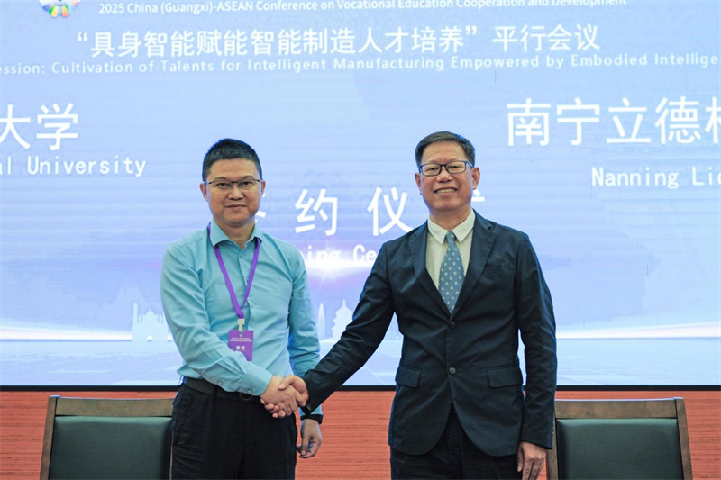 为推动人工智能与实体经济的深度融合,拓展中国与东盟国家在职业教育与智能制造领域的合作新路径,9月16日上午,由广西壮族自治区教育厅主办、南宁职业技术大学承办的2025中国(广西)—东盟职业教育合作发展大会“具身智能赋能智能制造人才培养”平行会议,在南宁职业技术大学会议中心二号厅召开。