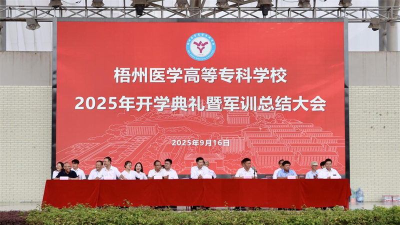 9月16日,梧州医学高等专科学校在学校田径场举行了2025年开学典礼暨军训总结大会。学校理事长、校长何建军,副校长邱铁钢、肖志勇、肖新宇,纪委书记罗力峰,各行政处室及二级学院负责人出席本次大会,会议由邱铁钢副校长主持。