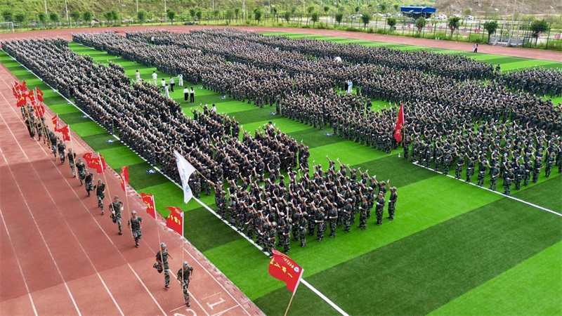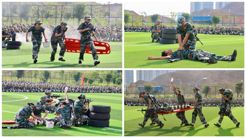 军训成果展示成为全场瞩目的焦点。同学们身着统一的迷彩服,以饱满的精神状态和整齐划一的动作,展示了军训期间的训练成果。在战术展示环节,同学们模拟实战场景,运用所学技能进行战术展示。赢得了在场师生的阵阵掌声和喝彩。