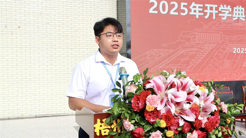 表演结束后,梧州医专学生代表2025级中医学院的罗欣欣同学上台发言。她分享了自己初入校园的激动心情和对未来学习生活的美好憧憬,并表示将珍惜在校时光,努力学习专业知识,为成为一名优秀的医学人才而不懈奋斗。