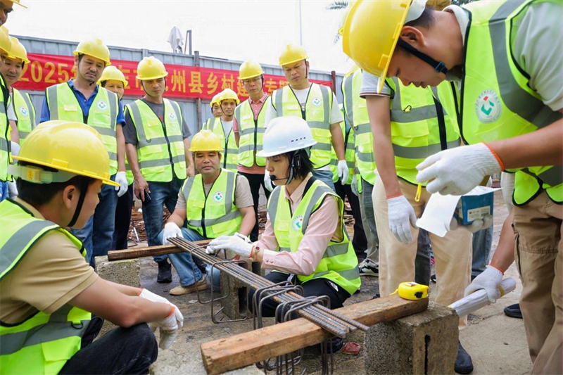 在龙州县的实训环节,学员分组开展坡屋面钢筋安装绑扎技能竞赛,教师现场点评指导,村镇学员代表交流经验。这种以赛促学、学用结合的方式,极大激发了学员的学习热情,有效提升了实操能力,进一步坚定了他们投身家乡的信心。