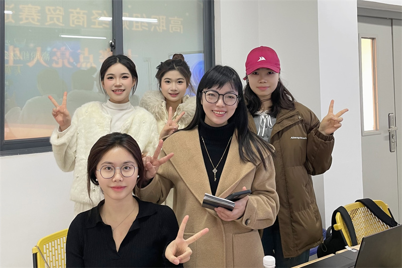 “要让学生在赛场上出彩,教师先要在育人中扎根。”这是两位老师始终坚守的教育信条。备赛期间,莫恬静老师紧扣“多语种商务谈判”“合同履行全流程”等赛项核心环节,凭借其丰富的外贸行业实战经验,为学生层层剖析国际商务场景中的潜在风险与破局之道;苏艳老师则紧扣数字经济发展脉搏,引入广西瑜丰集团香樟精油电商项目、广西启迪创新跨境电子商务有限公司珠宝电商项目等本土企业真实案例,让学生在“数据智能分析”“AI视觉设计”“全域整合营销”等前沿领域得到充分锻炼。