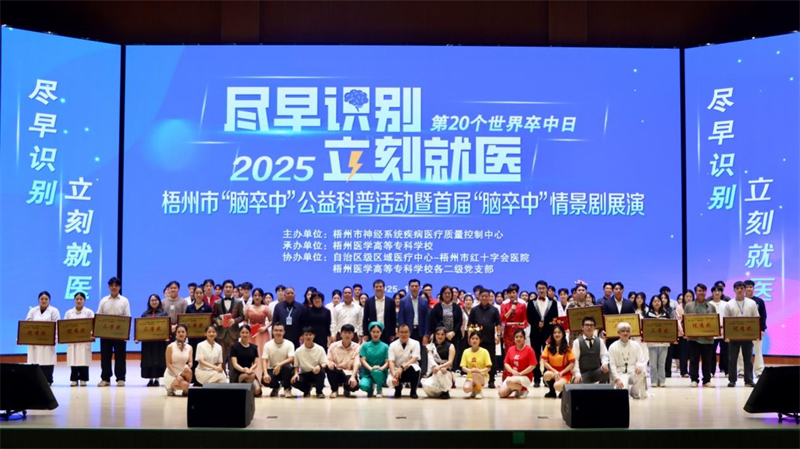 2025年梧州市脑卒中公益科普活动暨首届脑卒中情景剧展演,为公众提供了一场精彩的科普盛宴,让卒中防治知识深入人心。活动还通过网络进行了全程直播,相关视频回放可以在梧州市红十字会医院视频号,梧州医学高等专科学校抖音号观看。