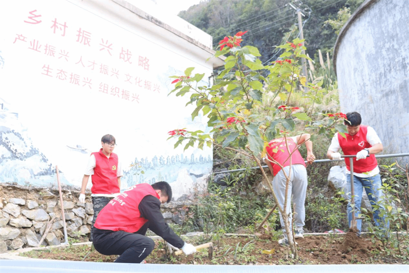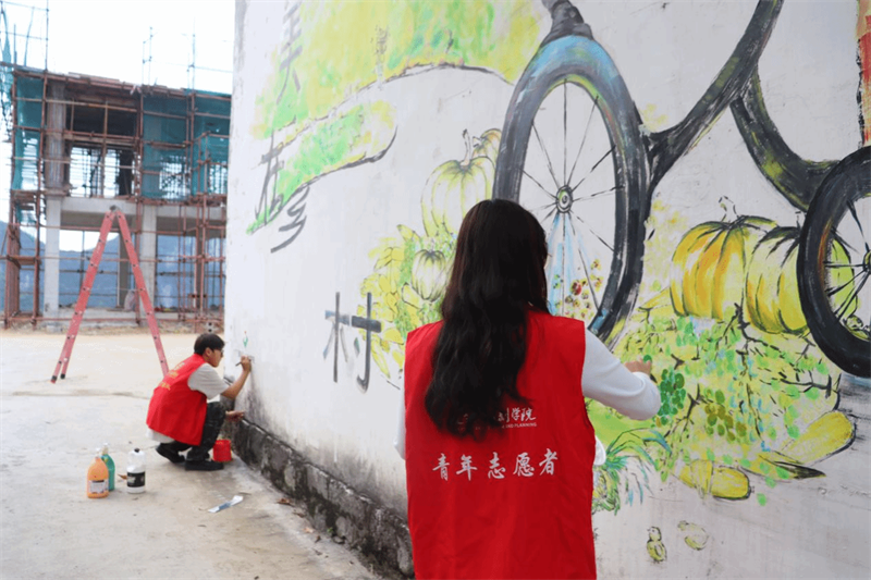 在都安瑶族自治县的乡间田野,学生党员们将课堂所学转化为乡村实践行动。他们手持画笔,在村落墙面上创作以乡村振兴、乡风文明等为主题的墙绘作品,让原本普通的墙面成为传播正能量的文化阵地;他们走进乡村小学,开展“大手拉小手”美育教育活动,为孩子们传授绘画技巧;他们深入田间地头,实地勘测、收集数据,用专业学识为乡村规划建设提供技术支持,在服务乡村振兴中展现新时代青年的责任担当。