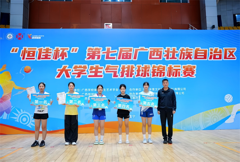 本次比赛设置体育专业组、普通本科组和高职高专组,吸引了来自全区各高校代表队的550余名健儿同台竞技。在教师付思洁、王俞方的指导下,广西国商院女子气排球队将长期刻苦训练的成果化为赛场的制胜力量。比赛中,队员们展现出千锤百炼的技战术水平和紧密无间的团队配合,她们不畏强手、顽强拼搏,经过五轮激烈角逐,最终以全胜的骄人战绩勇夺桂冠!这份沉甸甸的荣誉,是对师生们长期以来辛勤付出与卓越追求的最佳回报。