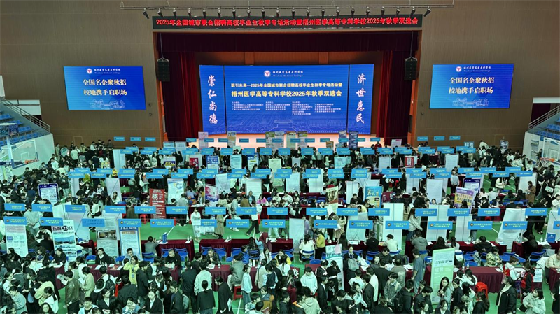 11月22日,2025年全国城市联合招聘高校毕业生秋季专场活动暨梧州医学高等专科学校2025年秋季双选会在该校蔚蓝体育馆举行,双选会共邀请到区内外超270家企事业单位参与,提供了各类优质岗位超7000个。梧州医专及其他院校医学毕业生约6800人入场求职,近千名毕业生现场与用人单位达成初步就业意向。