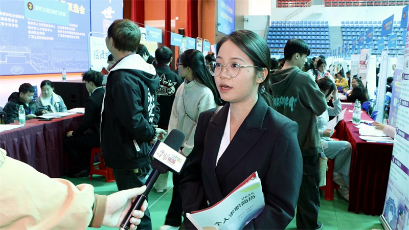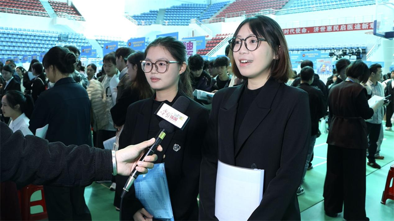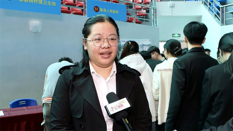 广西卫生职业技术学院中医学专业学生张惠婷:“今天很高兴能够来参加梧州医专举办的双选会,双选会上有很多岗位,我也投递了很多简历,希望能在今天找到心仪的工作。”