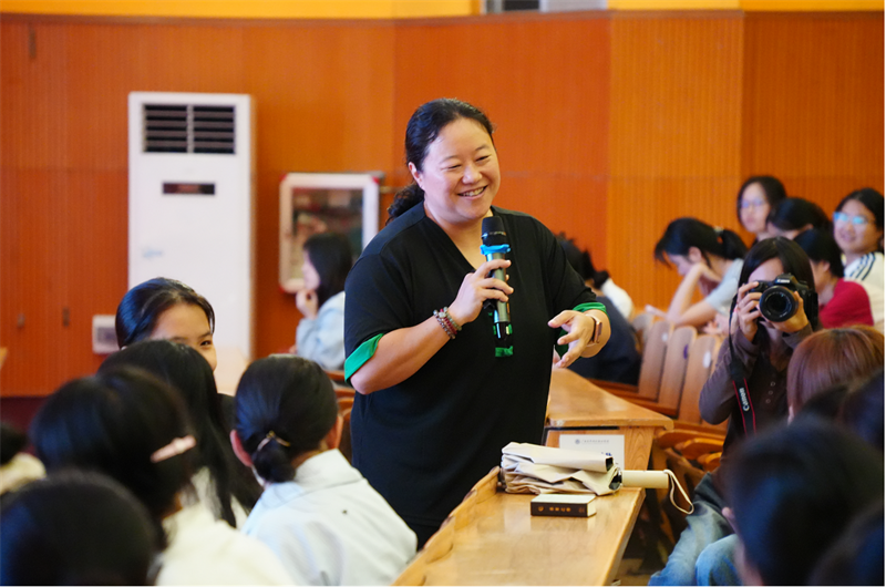 学生踊跃提问“宿舍小摩擦如何破冰”“备考压力大到失眠怎么办”“如何拒绝他人又不影响关系”等具体问题,王老师结合案例逐一拆解,提供“矛盾冷静期”“睡眠正向暗示”“委婉拒绝公式”等定制化建议,让讲座从“单向输出”变为“双向奔赴”。