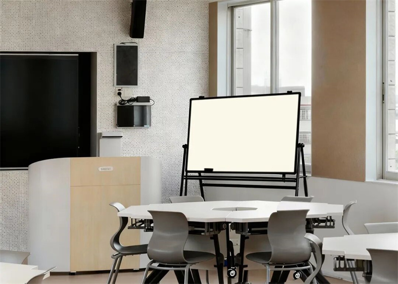 SC教室配备柔和护眼照明系统与大面积开窗设计,以浅色调、原木色为主视觉,搭配暖黄色软装,构建通透舒适的学习环境。更核心的是师生关系的转型:取消高台讲台,教师从“讲授者”转变为“课程设计师”,俯身引导学生探究;学生从“被动接收者”变为“主动建构者”,在平等互动中大胆表达、勇于探索,使课堂成为师生协同成长的“学场”,彰显教育对学生的人文关怀。