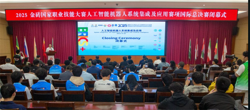 12月21日,2025金砖国家职业技能大赛人工智能机器人系统集成及应用赛项国际总决赛在南宁职业技术大学圆满落幕。来自中国、泰国、越南、印度尼西亚等国家的53支队伍经过两天的激烈角逐,在绿城南宁共同书写了技能竞技与国际友谊的精彩篇章。