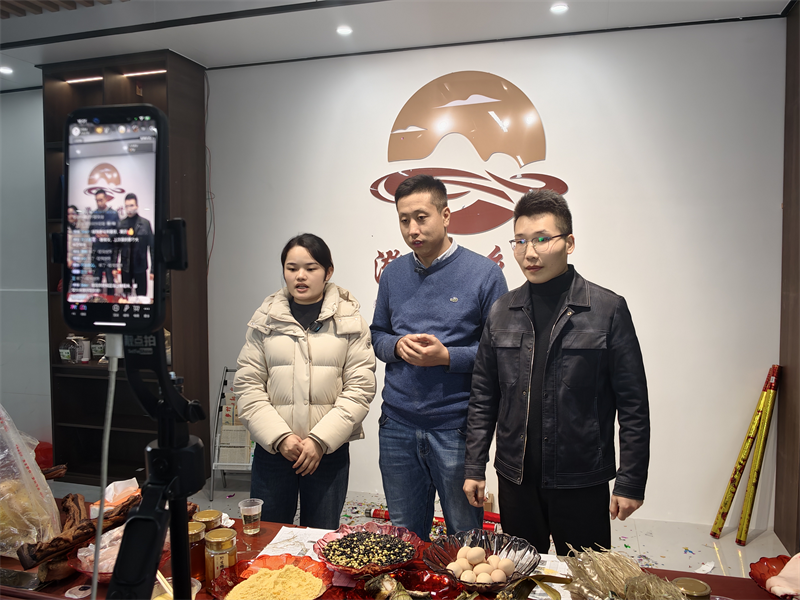 公司成立当天,一场以“消费连万茂·情深促振兴”为主题的助农直播同步开启。瑶乡蜂蜜、生态黄豆、黑山羊肉等特色农产品在镜头前一一展示,通过互动讲解、文化推介,吸引了众多关注。直播一小时销售额突破5万元,实现“开门红”。