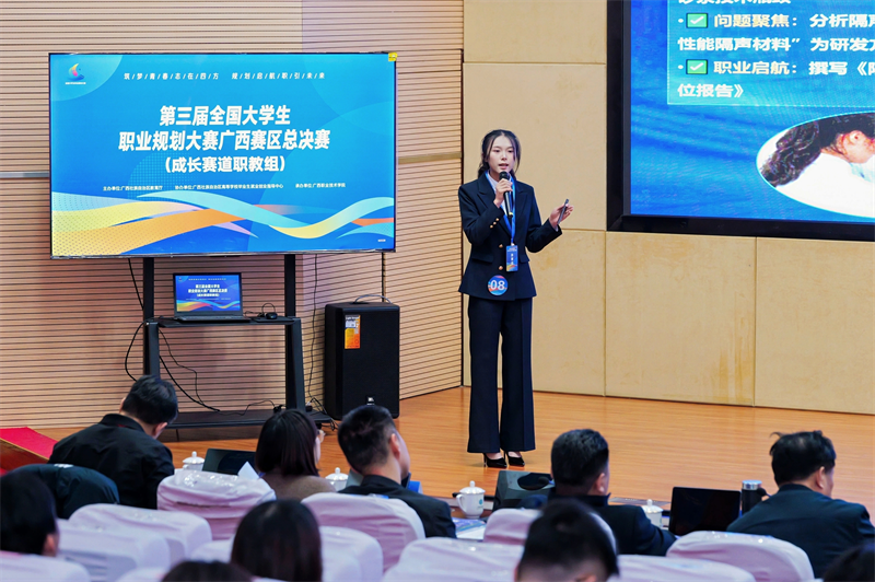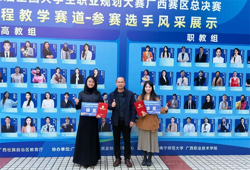 本届大赛以“筑梦青春志在四方,规划启航职引未来”为主题,设置课程教学、成长和就业三个赛道,各设高教组和职教组。自2025年10月启动以来,大赛吸引了全区86所高校69万名学生和近1600余名教师参与。经过激烈角逐,广西建院从校内1.1万余名参赛者(参赛率超75%)中脱颖而出的2名教师、2名学生,最终在自治区总决赛中取得佳绩,充分展现了该校师生扎实的职业规划能力和良好的综合素质。