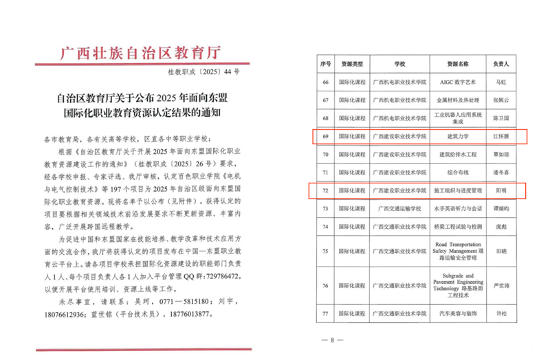 该院2门课程获认定面向东盟国际化职业教育资源认定课程。