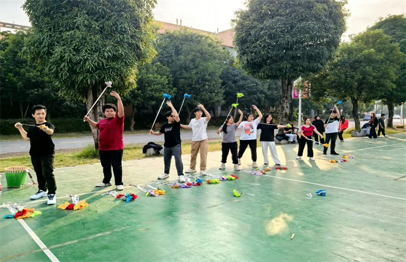 传统体育文化坊目前计划开展包括八段锦、舞龙、板鞋竞速、抛绣球等15个极具代表性且趣味盎然的民族传统体育项目,打造丰富多元的内容矩阵。通过设立“每周民传体验”品牌活动,同学们既能在八段锦的舒缓律动中调息养性,又能在舞龙与板鞋竞速的协作中锤炼团队默契,更能在抛绣球等极具广西特色的项目中体验浓郁风情,确保每周都有新鲜技能解锁,让不同兴趣特长的学生都能在此找到属于自己的运动乐趣。