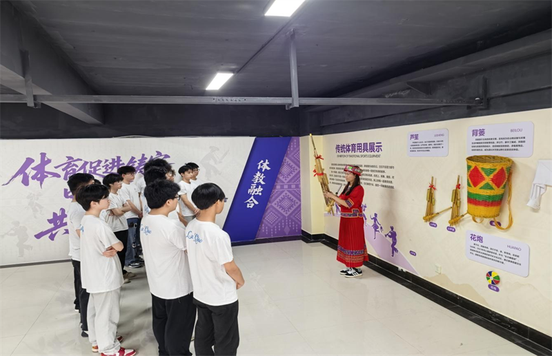 传统体育文化坊不仅是身体的训练场,更是历史的讲述者与民族团结的“大课堂”。借助空间内图文展板、实物道具及学生讲解,实现从肢体模仿到文化认同的升华。同时,依托“一站式”社区优势,将思政课堂搬进运动场所,不定期开展以传统体育为载体的民族团结思政课,让各族学生在共同学习跨民族项目的过程中手拉手、肩并肩,在协作配合中增进了解,让“中华民族一家亲”的理念在汗水与互动中真正入脑入心,进一步铸牢中华民族共同体意识。