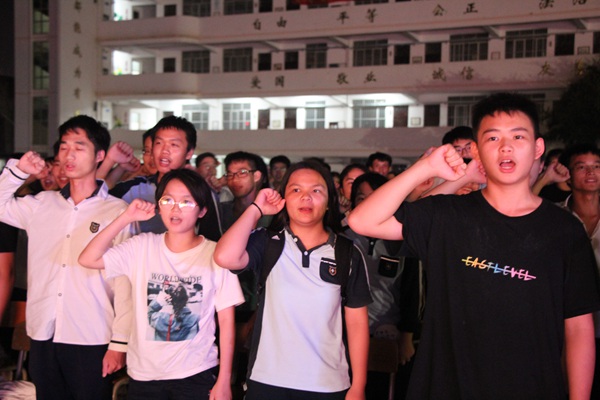 在薪火相传环节,高三年级组长蓝永强老师将高三冲锋号旗帜通过接力的方式传递给高二年级组长吴清霞老师。团队旗经过每一双激动的手,带着每个人火热的心和依依不舍之情,将这份感动和力量永远传递下去!典礼在全体师生大合唱《歌唱祖国》中顺利落幕。