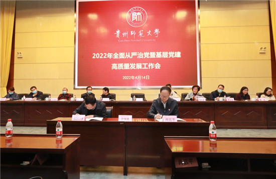 4月14日上午,贵州师范大学在花溪校区会议中心一楼学术报告厅召开2022年学校全面从严治党暨基层党建高质量发展工作会议。校党委书记肖远平出席并讲话,校党委副书记、校长张绍东主持。校领导刘照惠、银熙惠、赵松、罗永祥、欧阳恩良、曾丽,校党委委员蒋雪明、路言莉、姚作舟出席。各基层党委(党总支)书记、副书记、组织员、纪检委员,各学院院长、机关教辅单位主要负责人,机关各党支部书记,相关单位科级以上干部参会。