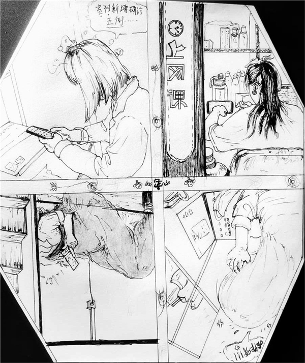 因受疫情影响,贵州师范大学的校园生活被迫按下“暂停键”。同学们不能到教室上课,老师们无法走出家门。但美术学院的师生们总有办法克服重重困难,继续在知识的跑道上奔跑。“停课不停教、停课不停学”。通过老师们的线上教学,同学们也用手中的画笔记录下了这特殊时刻的特殊感受。