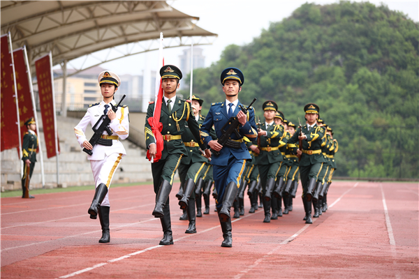活动在庄严肃穆的升旗仪式中拉开帷幕,气宇轩昂、意气风发的贵州师范大学军鹰团成员踏着整齐统一、铿锵有力的步伐护送五星红旗。升国旗、唱国歌、少先队员行队礼……鲜艳的五星红旗随着国歌在校园上空飘扬,嘹亮的国歌声响彻在校园的每一个角落,师生们大声唱出来的是对祖国的无限热爱和崇高敬意。