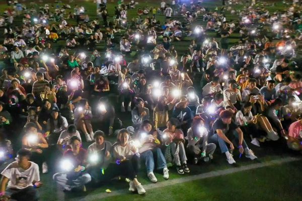 最后,草地音乐会成为了活动的高潮。新生们聚集运动场草地区域,挥舞着手中的闪光灯,配合音乐大声歌唱青春的旋律,享受着音乐表演带来的欢乐。音乐的声音回荡在校园中,现场洋溢着年轻人的活力和朝气,彰显了大学校园的蓬勃生机和校园文化的多样。