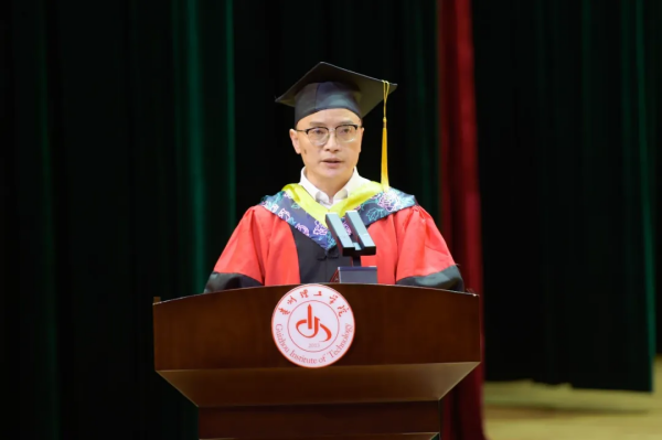 教师代表机械工程学院副教授黎书文老师在发言中勉励同学们要胸怀报国之志,涵养家国情怀;要永葆勤学之心,练就过硬本领;要常怀感恩之情,秉持传承理念。期待同学们努力追光,奔赴山海,成为自强不息的理工人。