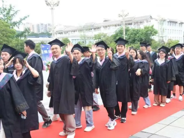 贵阳康养职业大学青年教师陈锦向作为优秀毕业生代表发言。他分享了他在校的学习经历,表达了对母校培养的感谢,并表示将牢记母校的校训和教诲,衷心祝愿学弟学妹们在新征程上心怀梦想、坚持热爱、不忘初心、脚踏实地,努力走出新精彩。