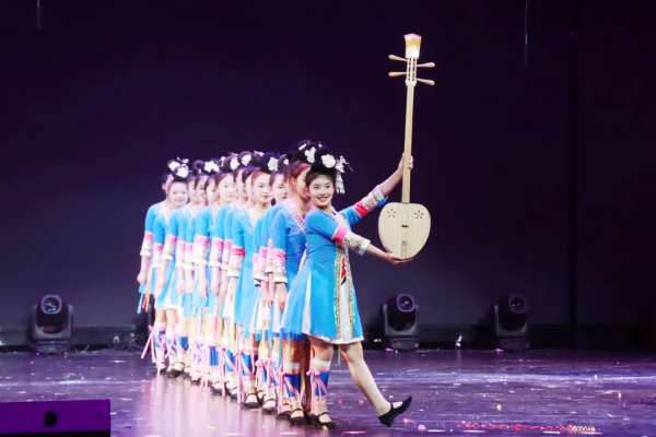 第一个节目《凯院毕业歌》是由音乐与舞蹈学院孙鹏飞等老师为同学们创作的毕业之歌,表达了临别之际,学校领导和老师对2024届毕业生的美好祝福。民族舞蹈《侗听》的表演,仿佛将同学们带入侗乡,让同学们沉醉在“侗听”的歌曲和独特的民族舞蹈中。千里同风,繁花相送,管乐《旋风》既表达了晚会的主题,又表达了四年大学时光飞快易逝。