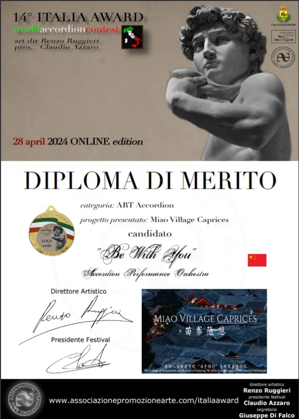 本届艺术节的评审组成员由来自全国的手风琴演奏家及教育家组成,共分两轮进行评审。贵阳人文科技学院乐团表演组参赛作品《苗寨随想》是乐团特邀作曲,贵州大学音乐学院青年作曲教师谢星和贵州师范学院音乐舞蹈学院钢琴教研室主任杨兴雨根据学生情况量身打造的原创作品,此前已获得第14届意大利世界手风琴大奖赛手风琴多元艺术组金奖和2024年第三届“俄罗斯杯”全俄巴扬和手风琴线上国际比赛乐团展演组金奖;贵阳人文科技学院“手风琴+”参赛作品《春天里》用音乐短视频的形式,以寓意着充满生机和希望的春天贯穿整部作品,象征青年大学生心中的梦想之光,照亮他们前行的道路,也激励着年轻学子们以蓬勃的朝气去追求知识、探索未知,为春天增添更多的活力与色彩,成为春天里最靓丽的风景。