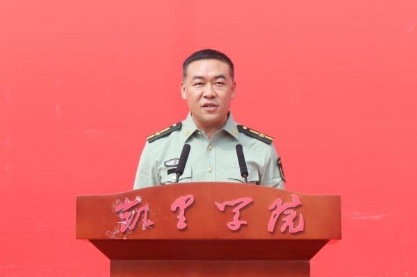 王占红作新生军训动员讲话,他分别向参训学员及教官提出了要求,并鼓励广大学员以饱满的热情投入军训生活。