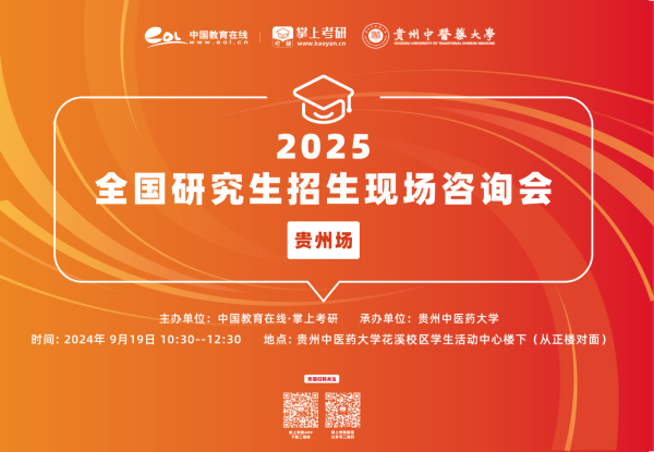 研究生教育关系国家的核心竞争力,也是自主人才培养能力与质量的关键。为进一步做好研究生招生咨询工作,满足考生报考需求,为各招生单位和广大考生建立多方位的信息沟通渠道,9月19日上午,由中国教育在线·掌上考研主办的“2025年全国研究生招生现场咨询会(贵州场)”在贵州中医药大学花溪校区学生活动中心楼下(从正楼对面)举办。
