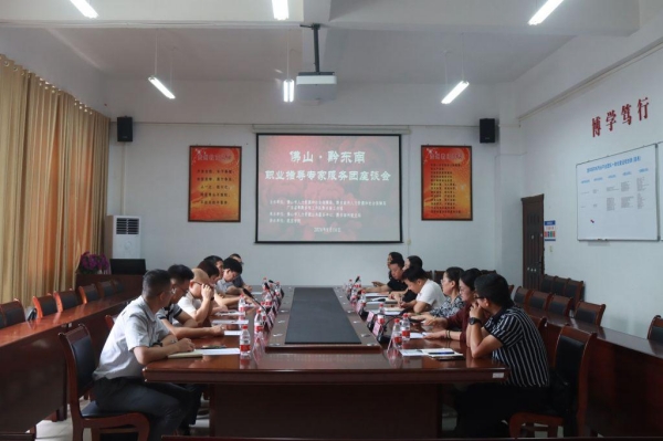 佛黔两地职业指导专家服务团座谈会在凯里学院理学院会议室召开。广东省生涯教育研究院院长周小健、副院长夏天、院长助理周益胜,佛山市人力资源和社会保障局就业促进科科长罗昭霞、人力资源公共服务中心王强、人力资源市场部副部长刘少鹏、就业和失业部科员杨冬生,黔东南州就业局副局长杨发、创业就业服务科科长刘丽及凯里学院、黔东南民族职业技术学院、贵州电子信息职业技术学校等高校领导参加本次活动。本次座谈会由黔东南州就业局副局长杨发主持。