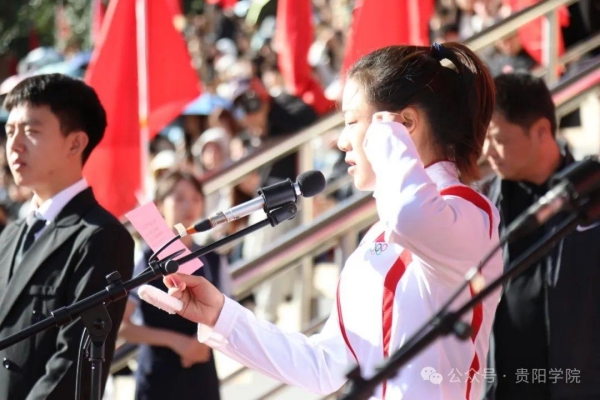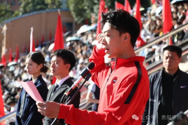 马力致开幕辞。他介绍了学校过去一年来在体育竞技方面取得的成果。每一项成绩背后都凝聚了贵院人追求卓越的坚毅汗水,也彰显了学校体育事业的发展进步。他指出,学校运动会是我校的重大体育盛事,是广大师生展示风采、促进交流的舞台,对于加强校园精神文明建设,提升校园文化品位具有重要意义。校运会既是对我校体育工作的大检阅,更是对学校师生精神面貌和综合素质的大检阅。他代表学校党委和行政,对本届运动会的召开表示热烈的祝贺!对精心筹备本届运动会的同学们、老师们表示诚挚的谢意,向全体裁判员、运动员致以亲切的问候和崇高的敬意!预祝本次运动会取得圆满成功!