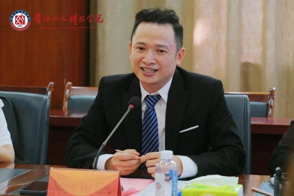 阮文孝副校长在讲话中介绍越南岘港师范大学的教育理念与发展情况。他表示,学校始终秉持开放包容、创新进取的教育理念,致力于培养具有国际视野和专业技能的优秀人才。他期待通过与贵阳人文科技学院深化交流合作,能够在教学资源共享、学术研究合作、师生互访交流等方面达成更多共识,为校际合作注入新活力。