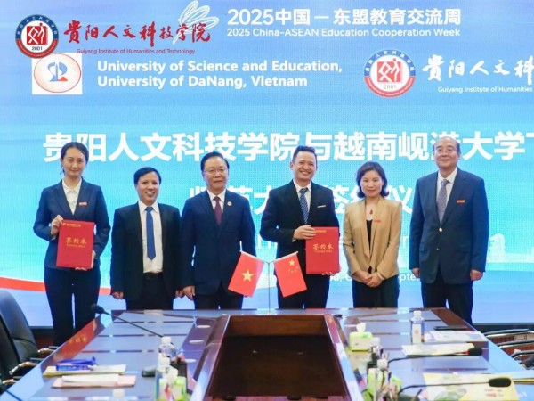 会上,与会双方围绕教学资源共享、学术研究协同、师生互访互动、文化交流互鉴等议题展开深入讨论,达成合作共识。贵阳人文科技学院左丹副校长与阮文孝副校长代表各自学校,共同签订了校际合作备忘录。备忘录的签订,为两校搭建起了合作桥梁。两校将以资源互补推动教育质量提升,以协同创新助力学术发展,以文化交融增进友谊,为培养高素质人才、促进高等教育事业繁荣进步共同努力奋斗。