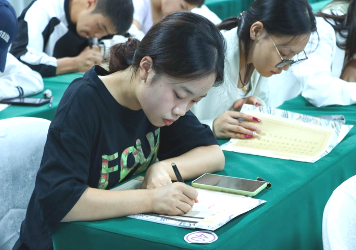 同期,学校举办了“笔墨中华”书法比赛和中国诗词大会校级决赛。书法比赛分软笔、硬笔两个组别,参赛选手现场创作,作品兼顾书写规范与艺术个性;诗词大赛通过闭卷笔试、飞花令对决、自我介绍和深度问答四个环节,综合考查学生的诗词积累与语言表达能力,展现中华经典语言的深厚魅力。