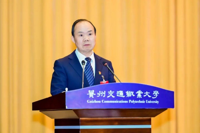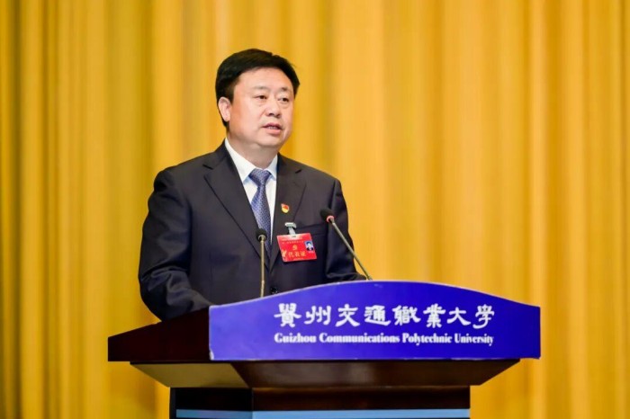 校党委书记何兴发同志代表中国共产党贵州交通职业大学委员会作题为《立足新起点 锚定新目标 开启新征程 为全面建设高水平职业本科大学而努力奋斗》的工作报告