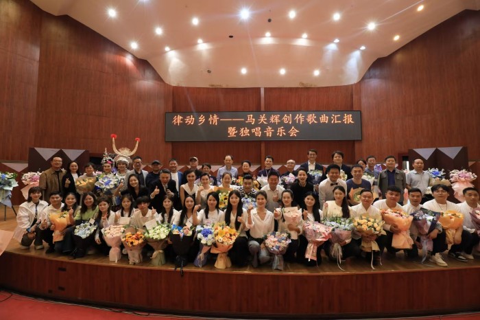 2025年9月27日,“律动乡情——马关辉创作歌曲汇报暨独唱音乐会”在贵州省文化馆国际音乐厅成功举办。本次音乐会由贵州师范学院主办,贵州省音乐家协会、贵州省文化馆及贵州师范学院音乐舞蹈学院共同承办,是扎根贵州大地文艺创作与艺术实践相结合的重要展示活动。贵州师范学院音乐舞蹈学院院长、省管专家、三级教授、一级演员马关辉,以一场高水平的声乐演出,展示了其从艺从教以来丰硕的创作成果与深厚的艺术造诣。