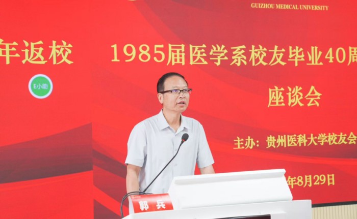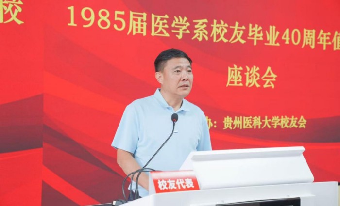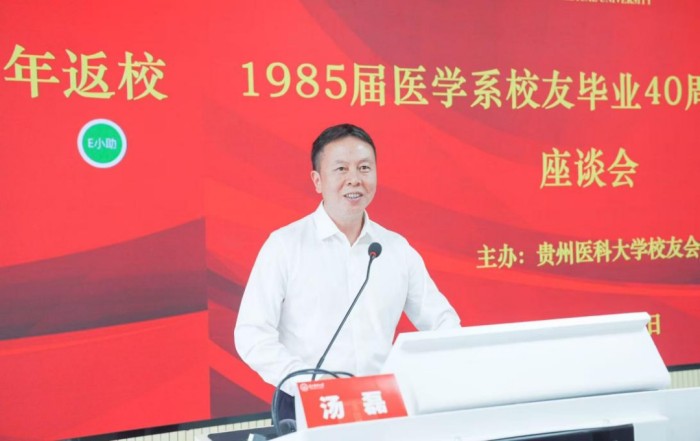 汤磊在致辞中深情欢迎校友回“家”,并向所有为医学事业奉献青春的1985届学子表达由衷的敬意。他表示,“当年的贵阳医学院条件有限,但你们用青春证明了:为人民健康服务的初心,从不会被物质条件困住,反而会在风雨里愈发坚定。”还向校友们介绍了学校四十年来的的跨越式发展,包括博士后流动站、国家级一流专业、国家重点实验室等多项突破。这些成就的背后,凝聚着一代代贵医人的接续奋斗,更离不开广大校友始终如一的深切关爱和鼎力支持。