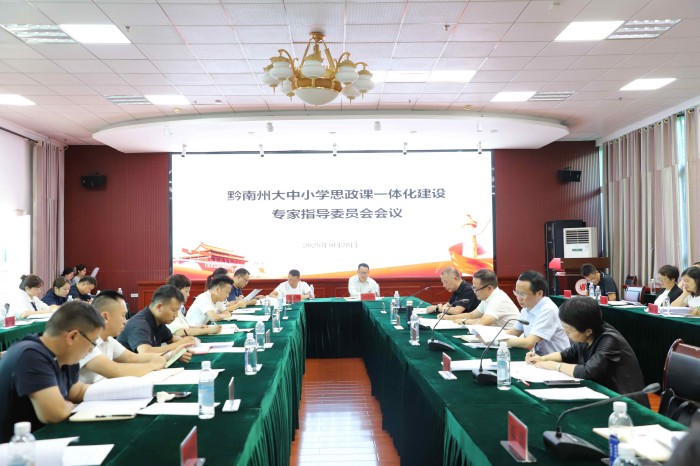 2025年9月28日下午,黔南州大中小学思政课一体化建设专家指导委员会会议在黔南民族师范学院召开。黔南州教育局领导、黔南师院有关领导、黔南州大中小学思政课一体化建设指导委员会专家组成员、各县(市)思政学科教研员等50余人齐聚一堂,共商全州思政课一体化高质量发展事宜。会议由州教育局党委委员、副局长邓浩主持。