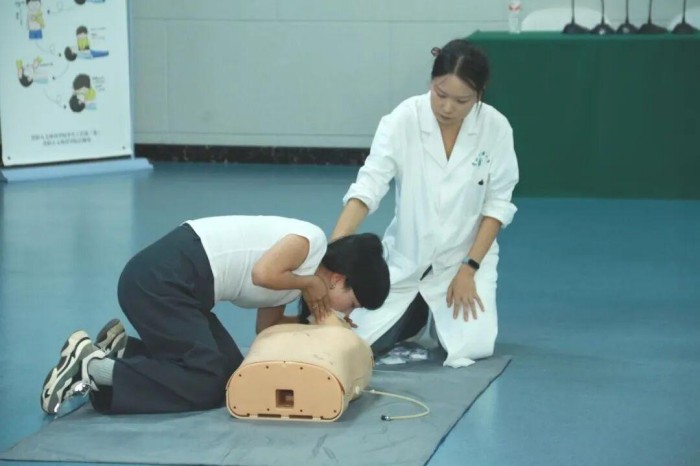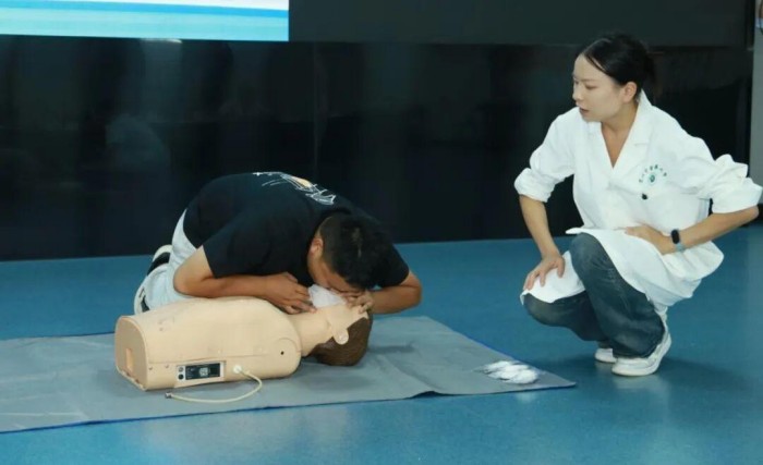 为提升辅导员应对校园突发事件的应急处置能力,本次培训特邀贵州中医药大学第一附属医院主任医师刘国雄开展“急救知识与技能”专题授课,课程重点围绕“心肺复苏”操作展开。刘国雄医生结合高校学生群体常见意外场景,采用“理论讲解+案例分析+现场演示”的模式,详细讲解心肺复苏的黄金抢救时间与标准操作流程,并借助模拟人道具指导辅导员进行实操练习。参训辅导员积极参与,针对按压深度、频率及人工呼吸配合等细节反复演练,现场学习氛围浓厚。