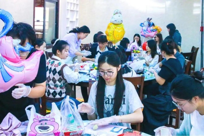 冰皮月饼DIY专区,校工会提前备齐彩色面团、香甜馅料及雕花模具,工作人员现场演示揉面、包馅、压模技巧,教职工们热情洋溢,纷纷动手创作,一块块晶莹剔透的冰皮月饼,不仅承载着手工制作的乐趣,更凝聚着对中秋团圆的美好期盼。