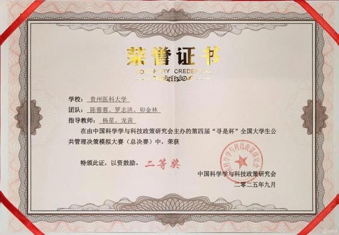 贵州医科大学师生在第四届“寻是杯”全国大学生公共管理决策模拟大赛中获全国二等奖