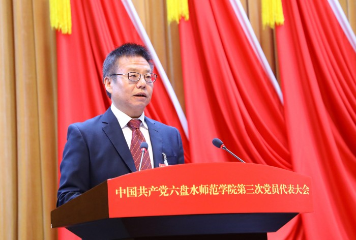 胡兴灿同志代表中国共产党六盘水师范学院第二届委员会向大会作了题为《艰苦奋斗强担当 守正创新拓新局 全面开启建设地方性高水平应用型大学新征程》的报告。