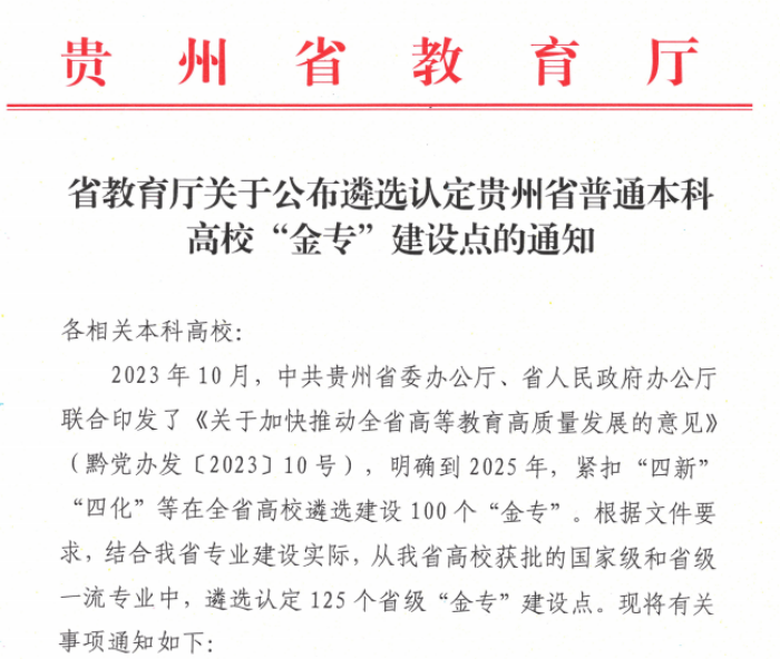 再添四“金”!贵州理工学院机械、飞行器、化工、材料专业获批省级金专