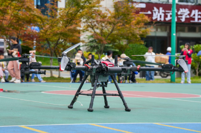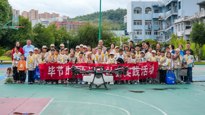 活动的最后一站设在中心球场。任金铜教授为小记者们讲解了DJI精灵、御、悟等多款无人机及航拍设备的应用知识。飞手现场演示了大型无人机的吊运与农业植保喷水作业,让大家真切体会到无人机在生态监测、农业植保、应急救援等领域的广泛应用与科技力量。