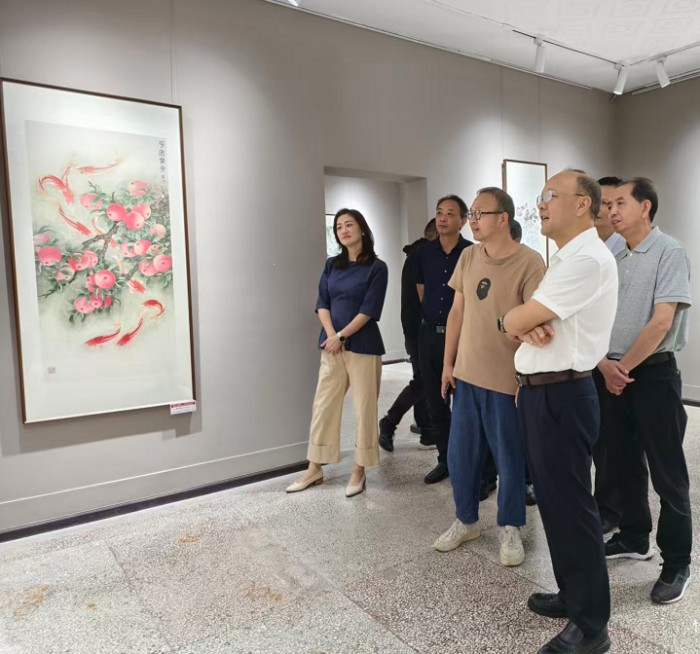 安顺学院党委书记程绪权,安顺学院纪委书记肖禹春,安顺市文联党组书记、主席王瑜,市文联党组成员、副主席杜云,市文联党组成员、秘书长庭华,市政协宣教文卫体委主任罗玉康,市文联组联部主任石勇一行共同莅临展馆观展指导。在安顺学院艺术学院院长罗文帝、副院长谢朝玺和梁勇的全程陪同下,领导嘉宾们细致观摩了展览,听取了关于本次展览从策划、组织到作品遴选与创作理念的全面汇报,并就相关内容与现场人员进行了交流。