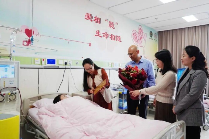 贵州医科大学党委副书记于浩、省红十字会副会长(挂职)邓仁丽一行专程前往贵州省人民医院(观山湖院区)对邹兰进行慰问,校团委书记王妤煜、省红十字会造血干细胞管理中心副主任杨梅、药学院党委副书记包欢欢等人陪同,面对前来慰问的领导和老师,她笑着分享近况:“身体没有别的不适感,请老师们放心”。 这份从容,一如她在学校时的模样——作为班级生活委员,她总是尽心尽力为同学们服务,也正因这份责任心,她曾获评“优秀学生干部”荣誉称号;作为怀揣梦想的学子,她已成功拿到2026年贵州医科大学的推免资格并收到了沈阳药科大学的录取通知。