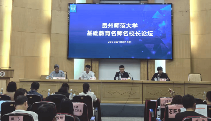 为提升教师学科素养与育人能力,充分发挥名师名校长引领作用,10 月 18 日上午,贵州师范大学基础教育名师名校长论坛在贵州师范大学附属中学田家炳书院三楼多功能厅举办。本次论坛作为贵州师范大学首届“香樟教学节”系列活动之一,汇聚多方教育力量,共探基础教育发展路径。贵州师范大学副校长管新福出席并致辞。贵州师范大学附属中学校长王晓祥主持。