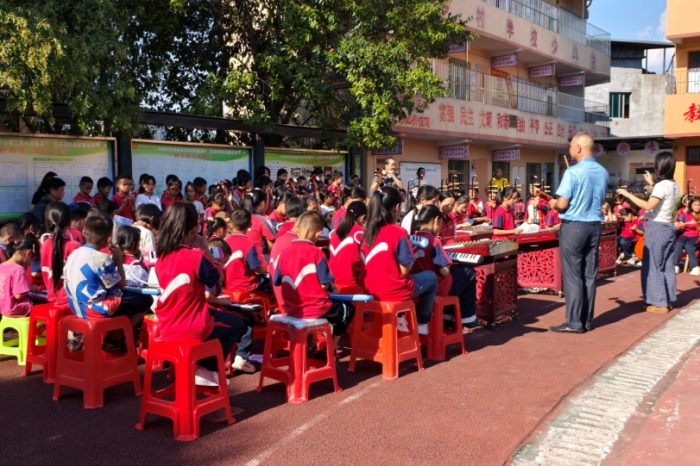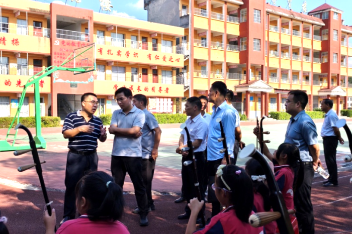 10月9日,在天柱县副县长石鑫磊、县教育局局长杨光玖等领导的陪同下,龙健一行抵达渡马镇小学。专家组观看了渡马镇小学学生们的器乐演奏,孩子们用稚嫩却充满热情的双手,奏响了一曲曲富有民族特色的美妙音乐。随后,专家组又参观了学生手工作品成果展,一件件充满奇思妙想的作品令人赞叹。在民族舞蹈培训课堂和民间武术培训场地,孩子们一招一式尽显功底,他们自信满满、动作娴熟,生动诠释了学校在传承与创新民族文化方面的成果。渡马镇小学将民族器乐演奏与侗戏等特色课程融入日常教学,充分契合了新课程标准下“五育并举”的育人理念,形成了独具魅力的办学特色,给专家组留下了深刻印象。