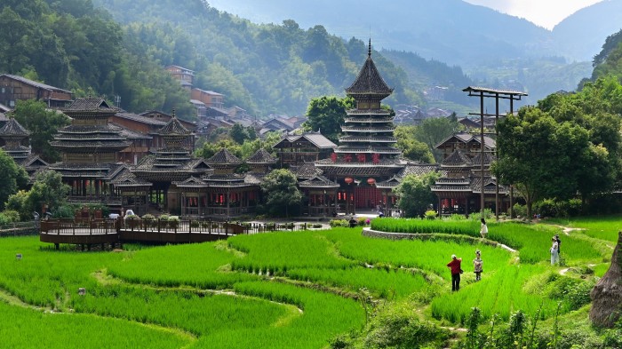 巍峨的鼓楼是凝聚民族智慧的精神灯塔,整座侗寨宛若一艘承载着民族文化基因的方舟,正沿着习近平总书记指引的方向破浪前行。在肇兴侗寨巍峨的信团鼓楼下,肇兴中学韦锋老师以深沉而温暖的声音,为研学实践队上了第一课。“同学们,看这座鼓楼!今年三月,习近平总书记就坐在这里,与乡亲们促膝长谈,共话美好未来。”